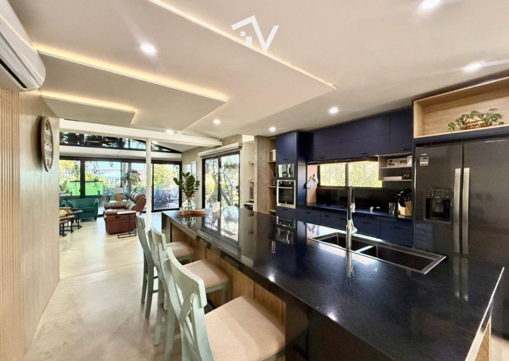 Al ingresar, un amplio espacio social integra la sala principal con una cocina abierta totalmente equipada (pantry, estufa de inducción, lavavajillas y despensa), complementada con cuarto eléctrico y sistema de CCTV.