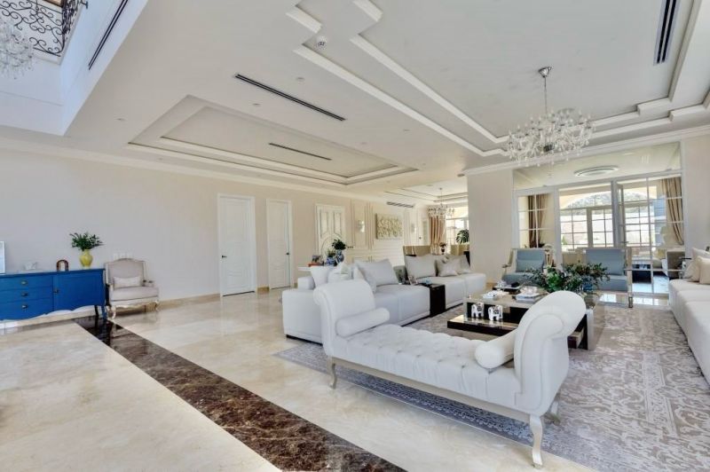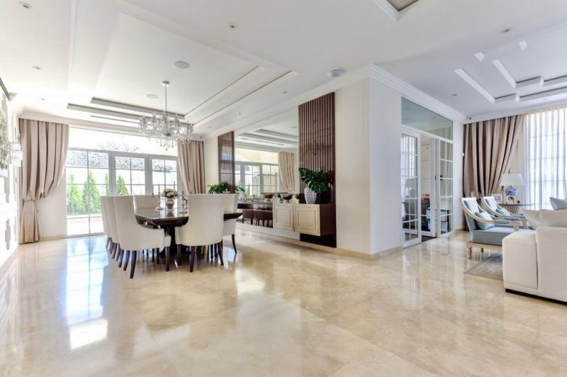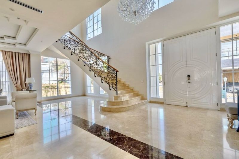 Al entrar, un atrio central de gran altura recibe con elegancia y distribuye hacia la sala, el comedor, la cocina, el teatrino y el baño social.