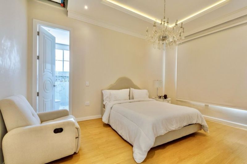 La principal sorprende con dos vestidores independientes, además de una oficina privada y acceso a un ático mediante escaleras retráctiles.