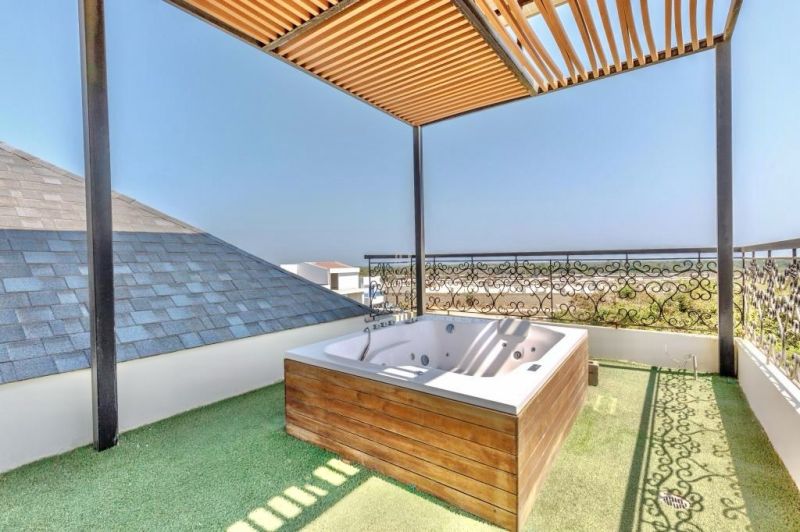 Como broche de oro, una escalera de caracol lleva al roof-top: un espacio exclusivo con jacuzzi, gimnasio y un spa con baño, adaptable incluso como sexta alcoba.